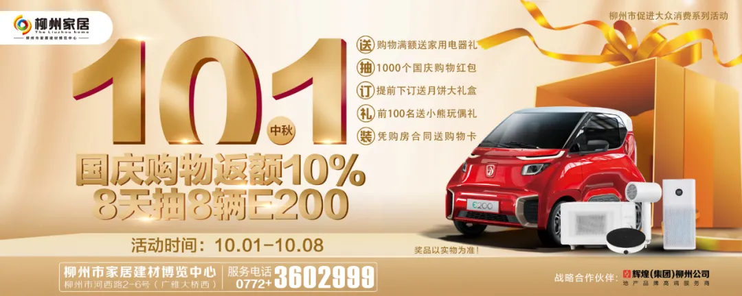 雙節同慶,柳州家居送8輛小E 購物返額10%