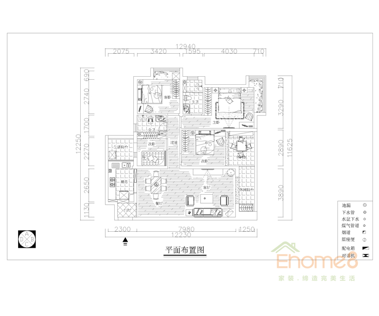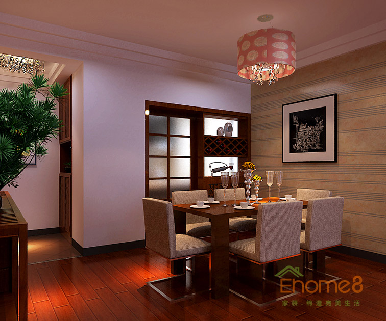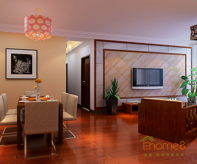 在水一方132㎡四房一廳田園風格裝修效果圖