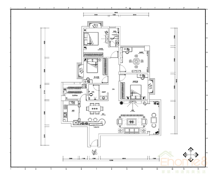 恒大城112㎡三房一廳歐式風格裝修效果圖
