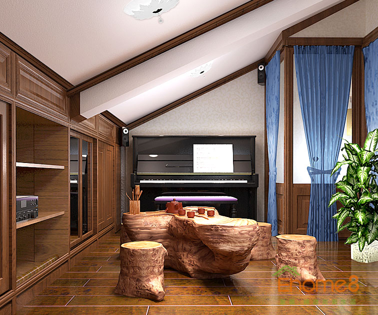 在水一方168㎡躍層地中海原木風格裝修效果圖