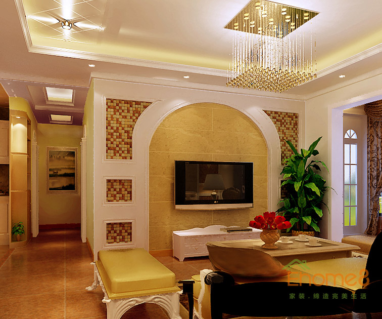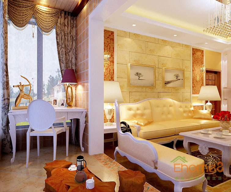 在水一方102㎡三房一廳法式風格裝修效果圖