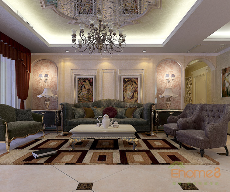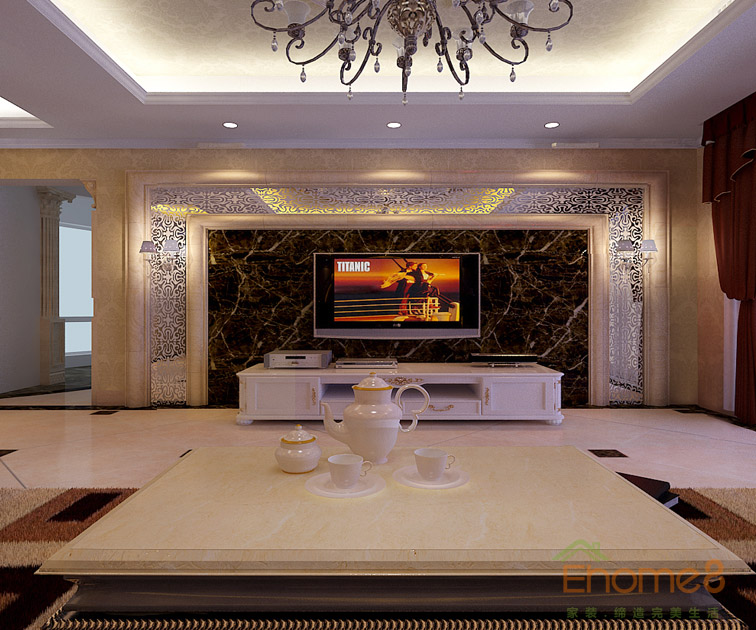 歐式客廳沙發電視墻裝修圖