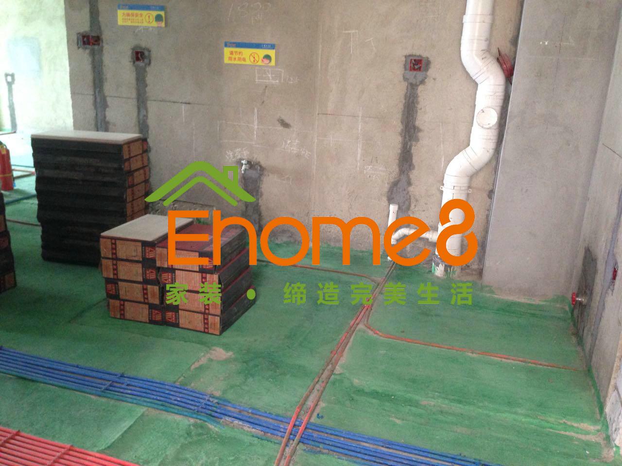 地面綠環(huán)地固的涂刷及水電材料的配送