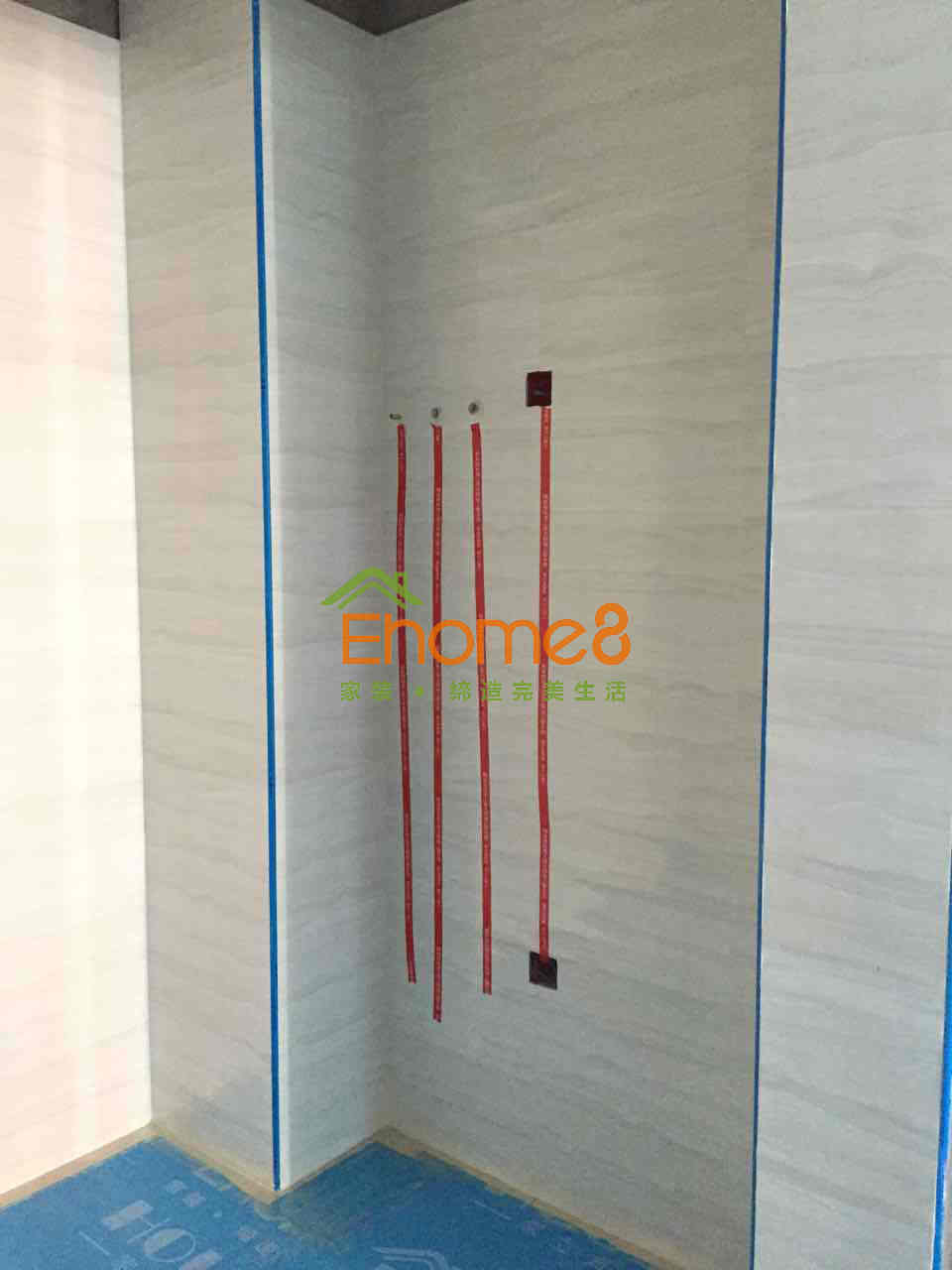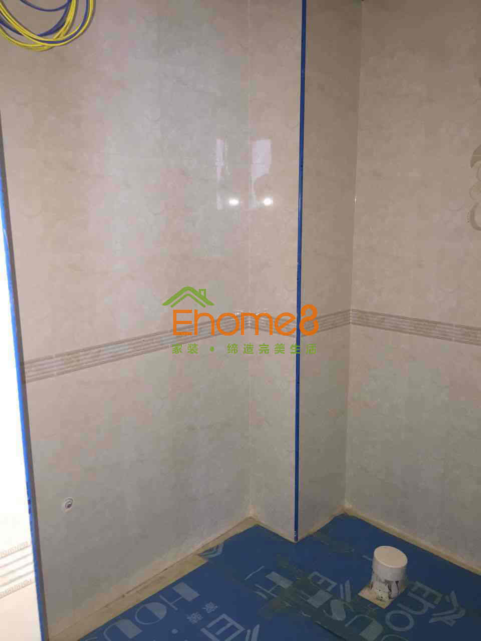 衛生間門安裝及衛生間有色防水的涂刷及閉水試驗,鋪磚完成。