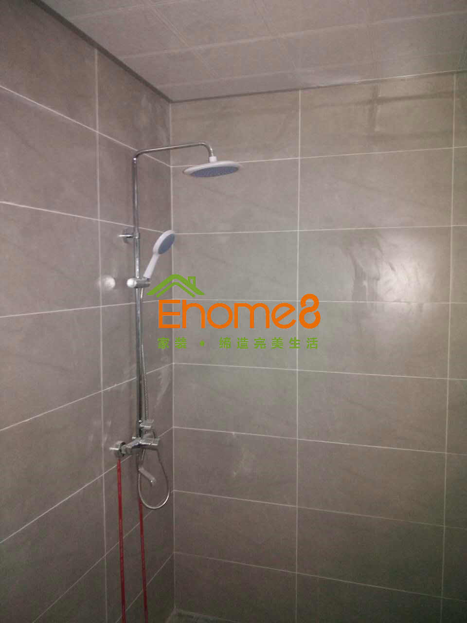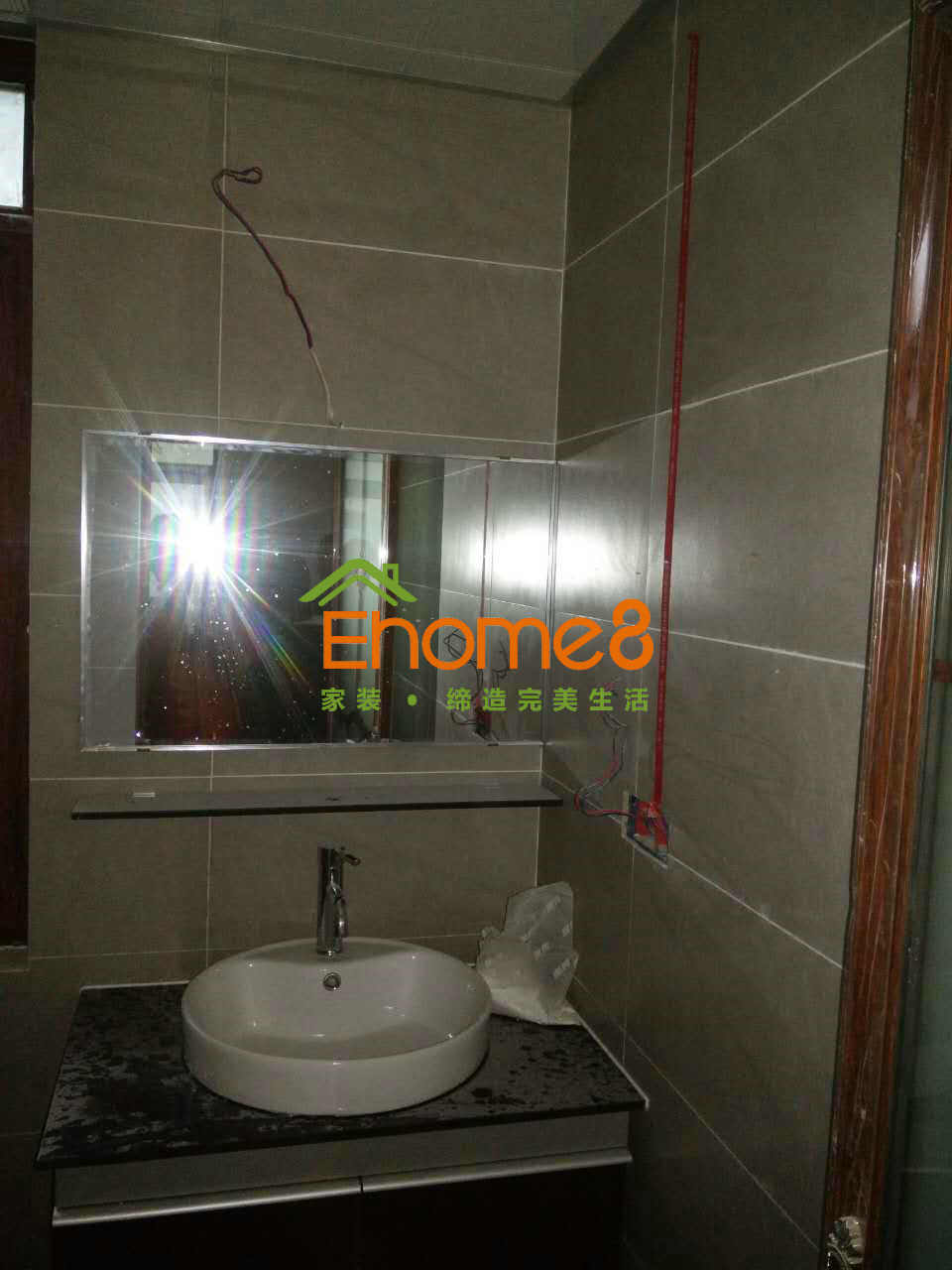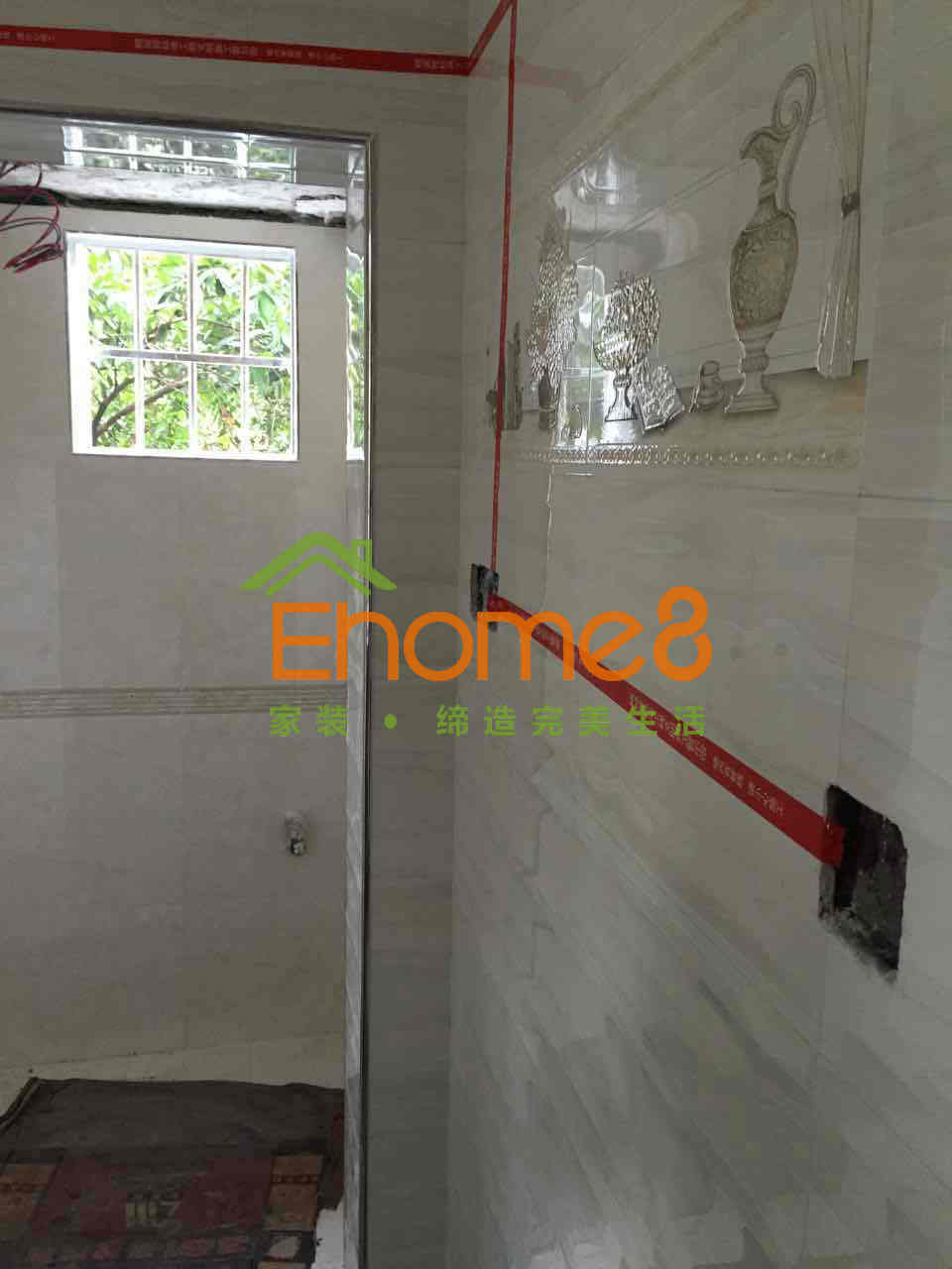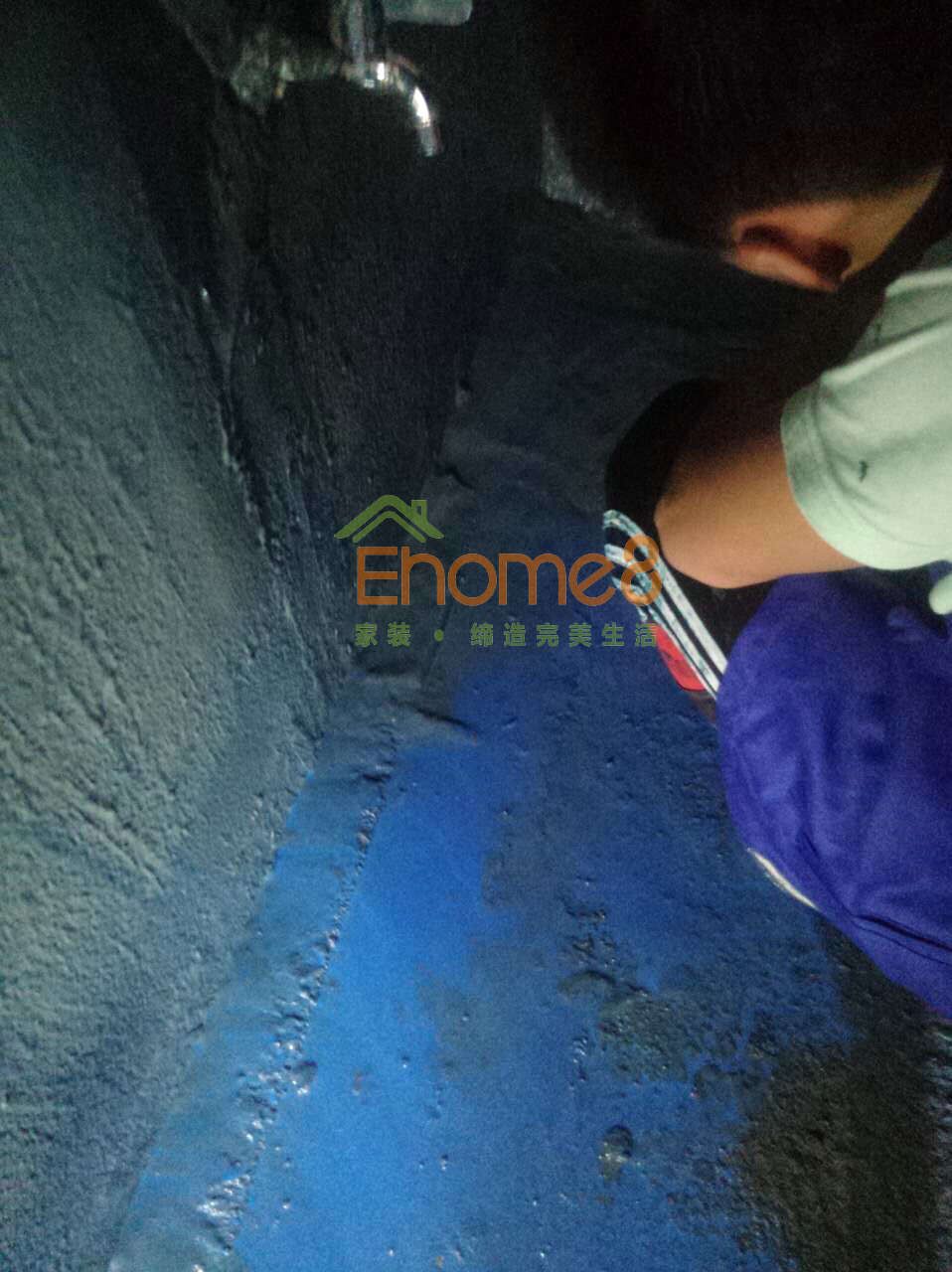 衛(wèi)生間門(mén)安裝及衛(wèi)生間有色防水的涂刷及閉水試驗(yàn),鋪磚完成。