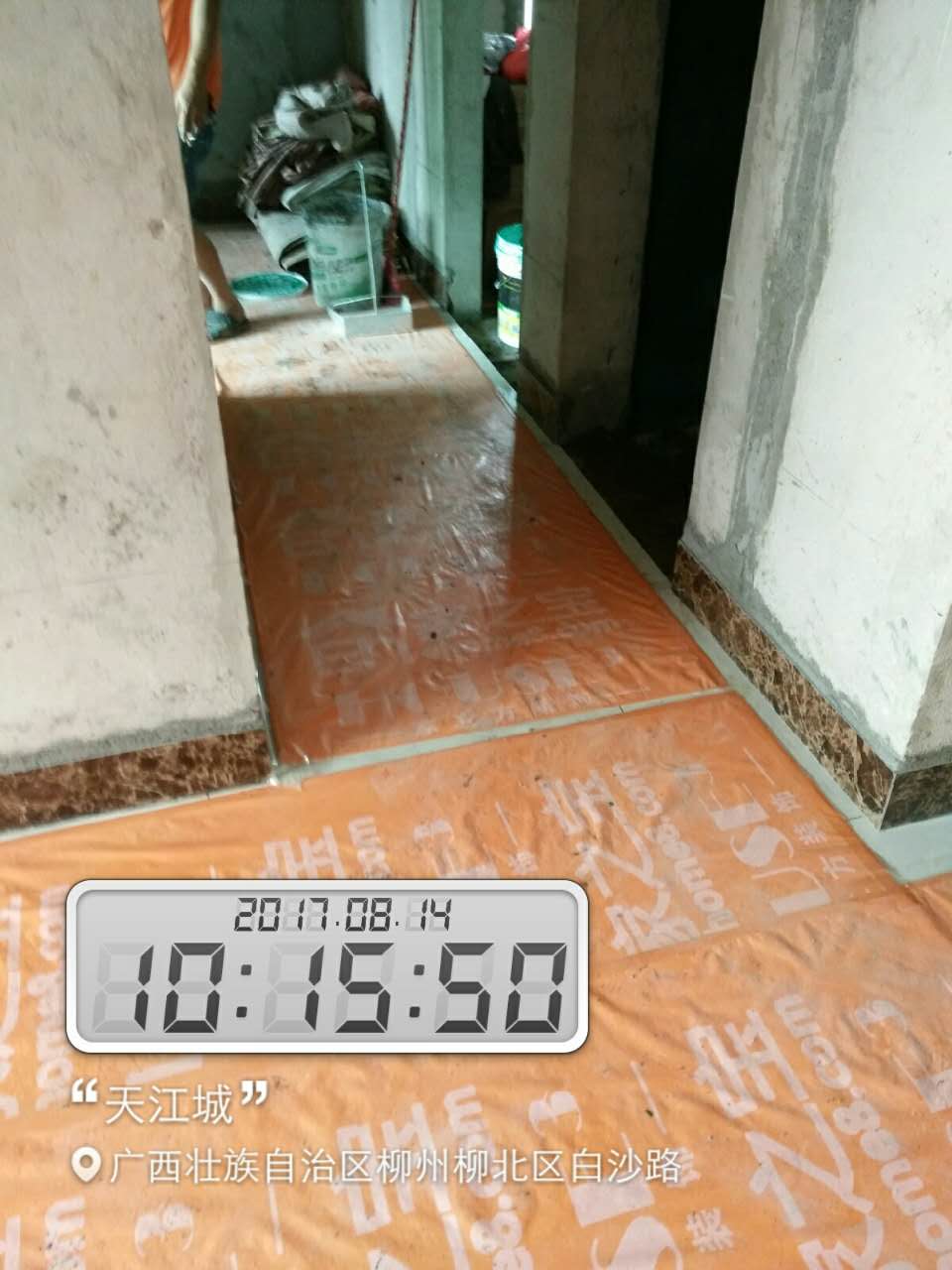 瓦工施工,平整對縫,鋪貼完畢即刻進行成品保護,鋪好地膜。