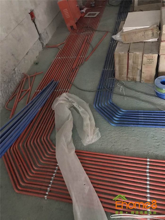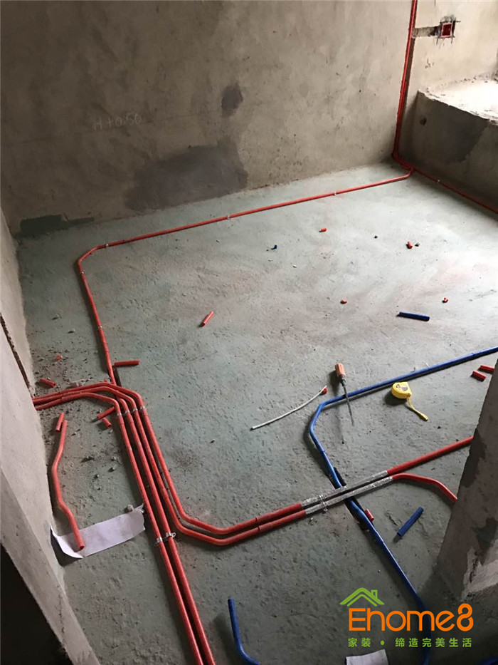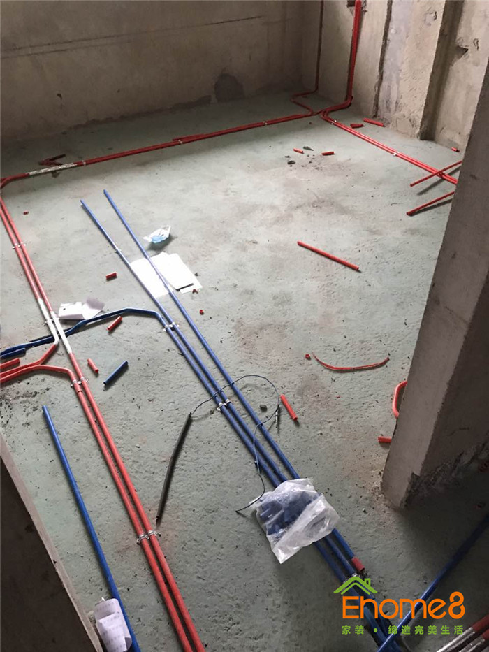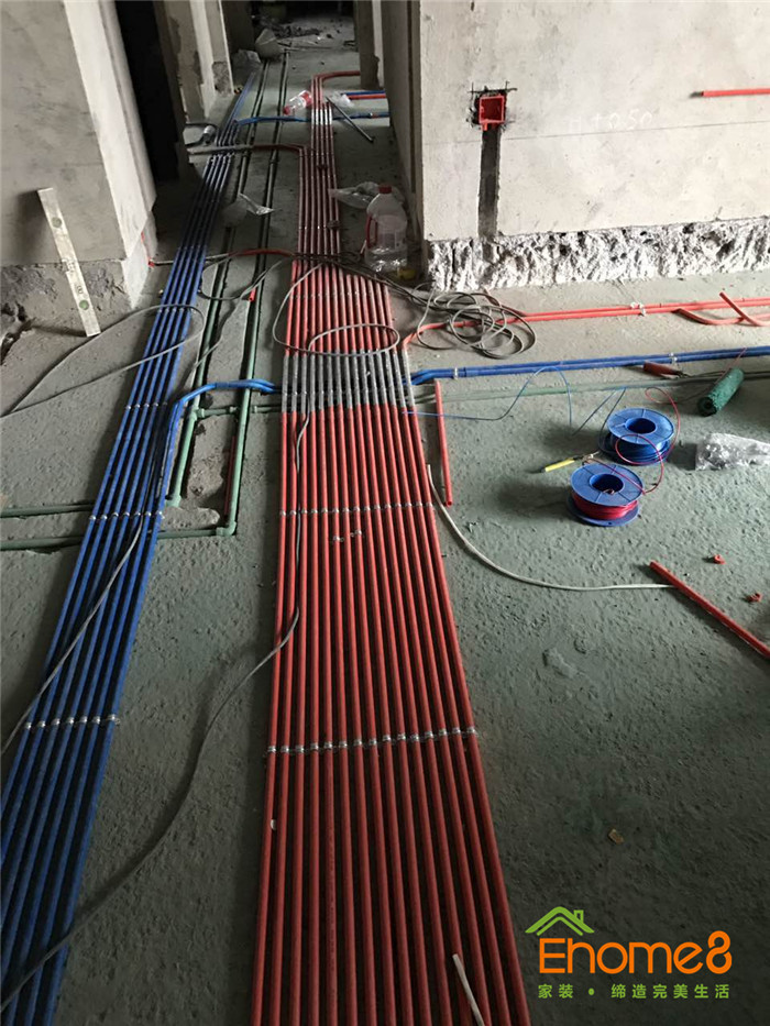 • 水電施工中,正在布管布線,工地稍微有些亂