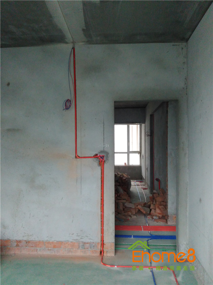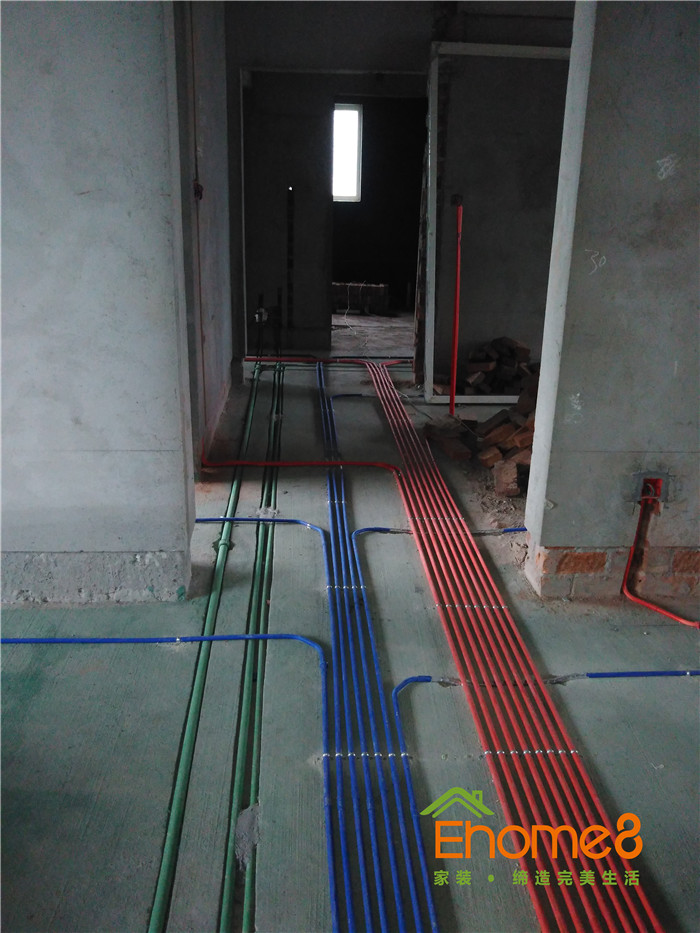 單管單槽,按國標工藝走線管水管,橫平豎直,八字拐角,采用德系歐標的水電材料