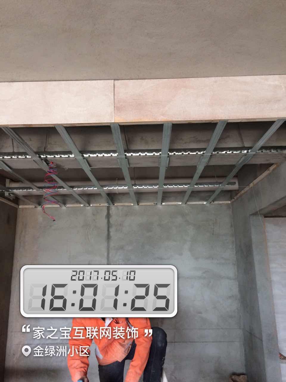 采用輕鋼龍骨搭建吊頂框架,吊桿50公分,主骨40公分,副骨30公分