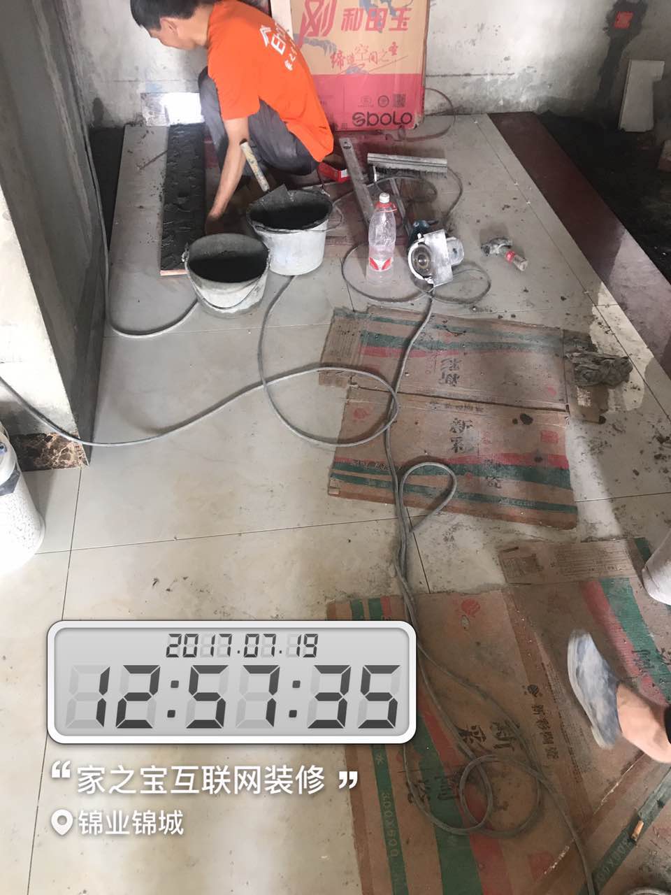 瓦工施工,平整對縫,鋪貼完畢即刻進行成品保護,鋪好地膜。