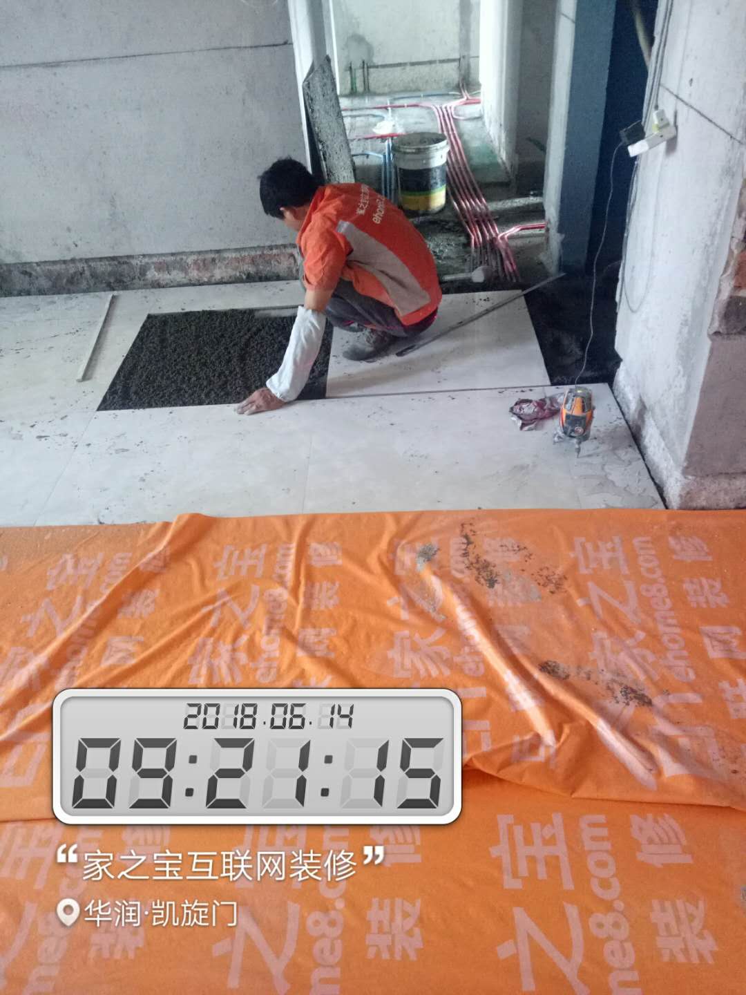 瓦工施工,平整對縫,鋪貼完畢即刻進行成品保護,鋪好地膜。