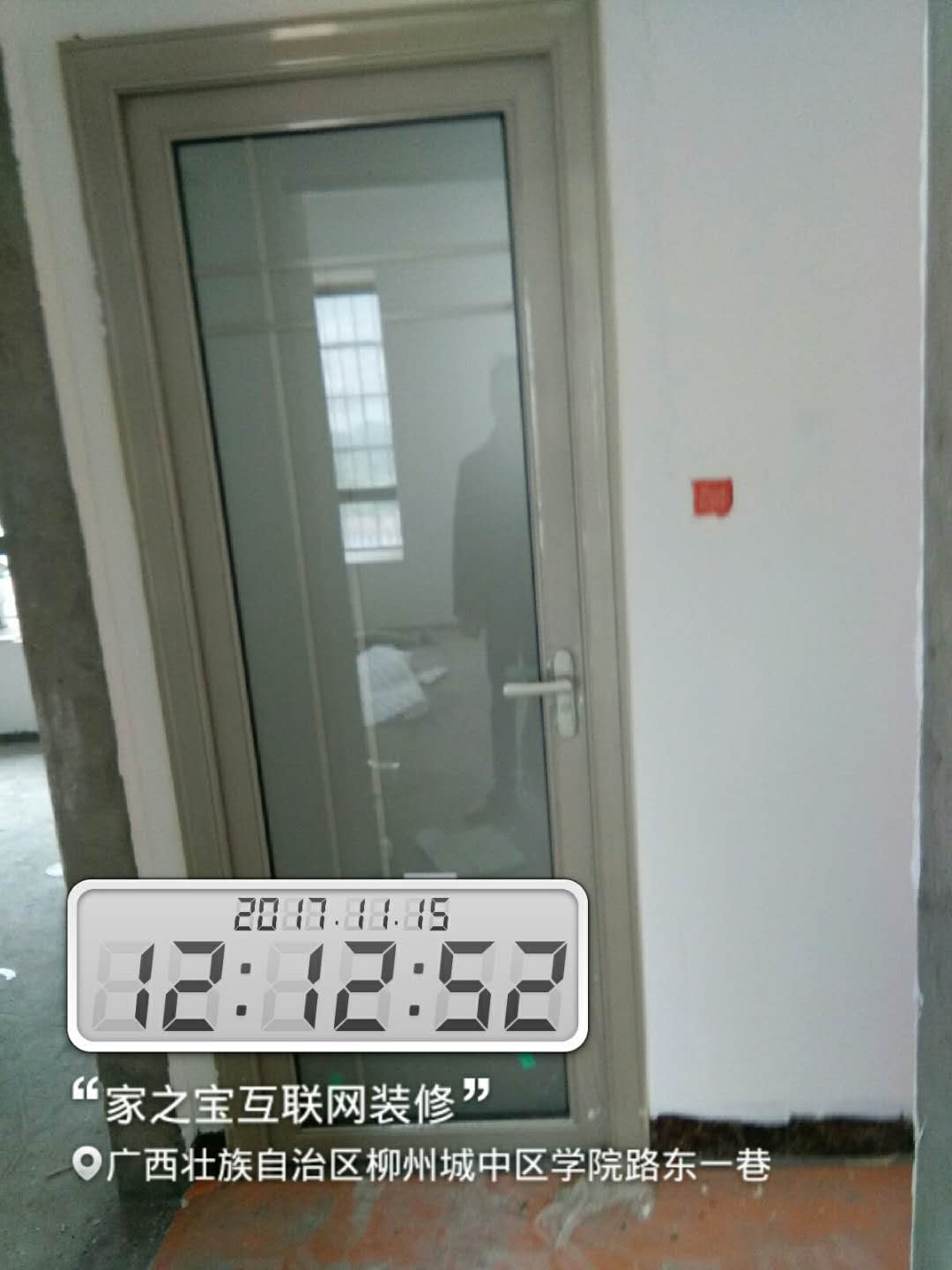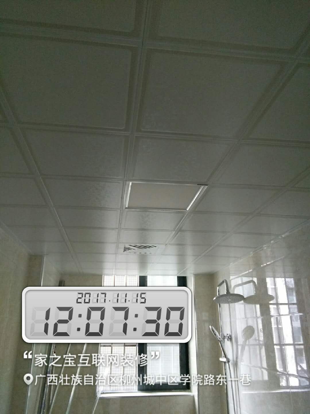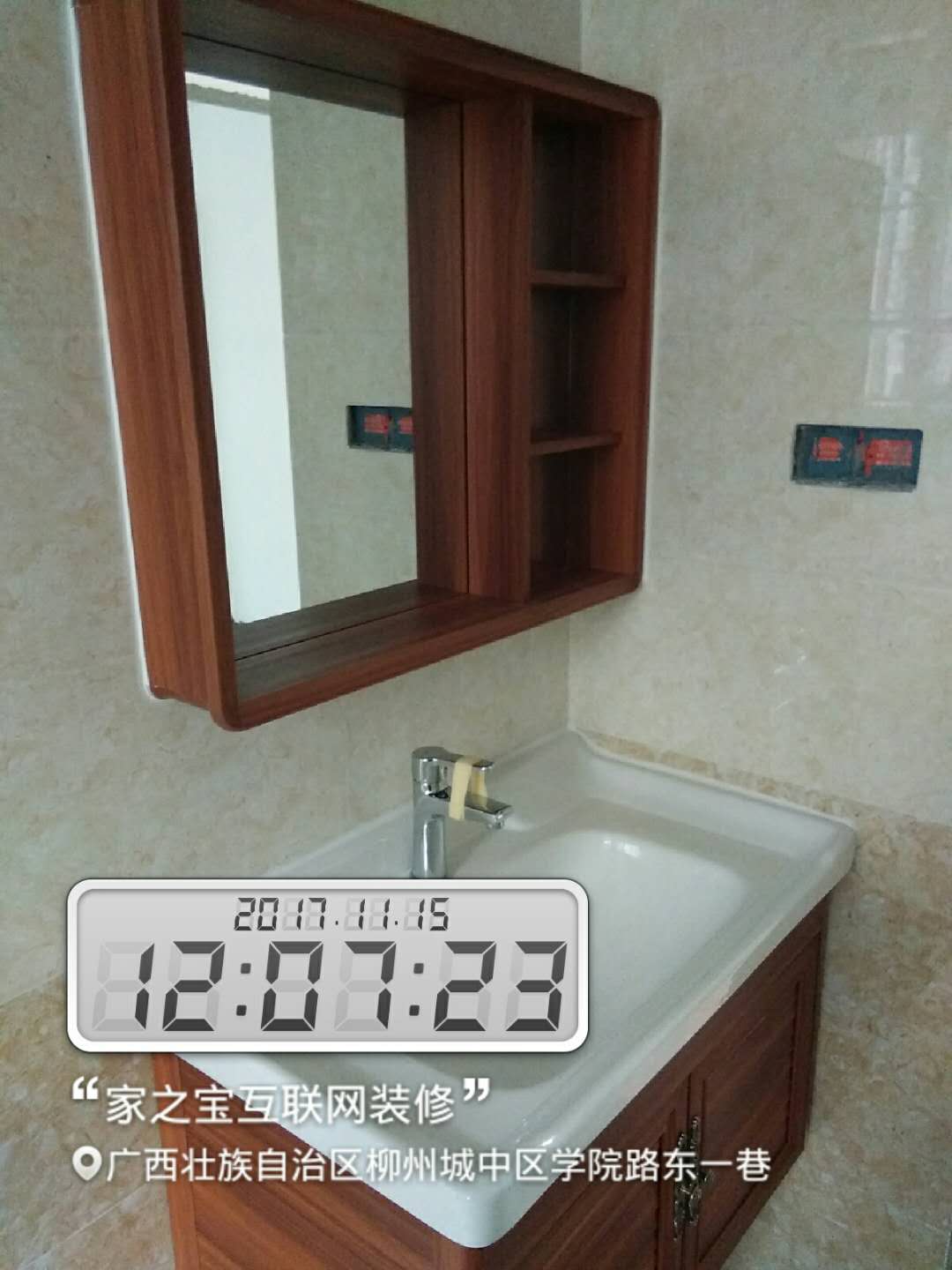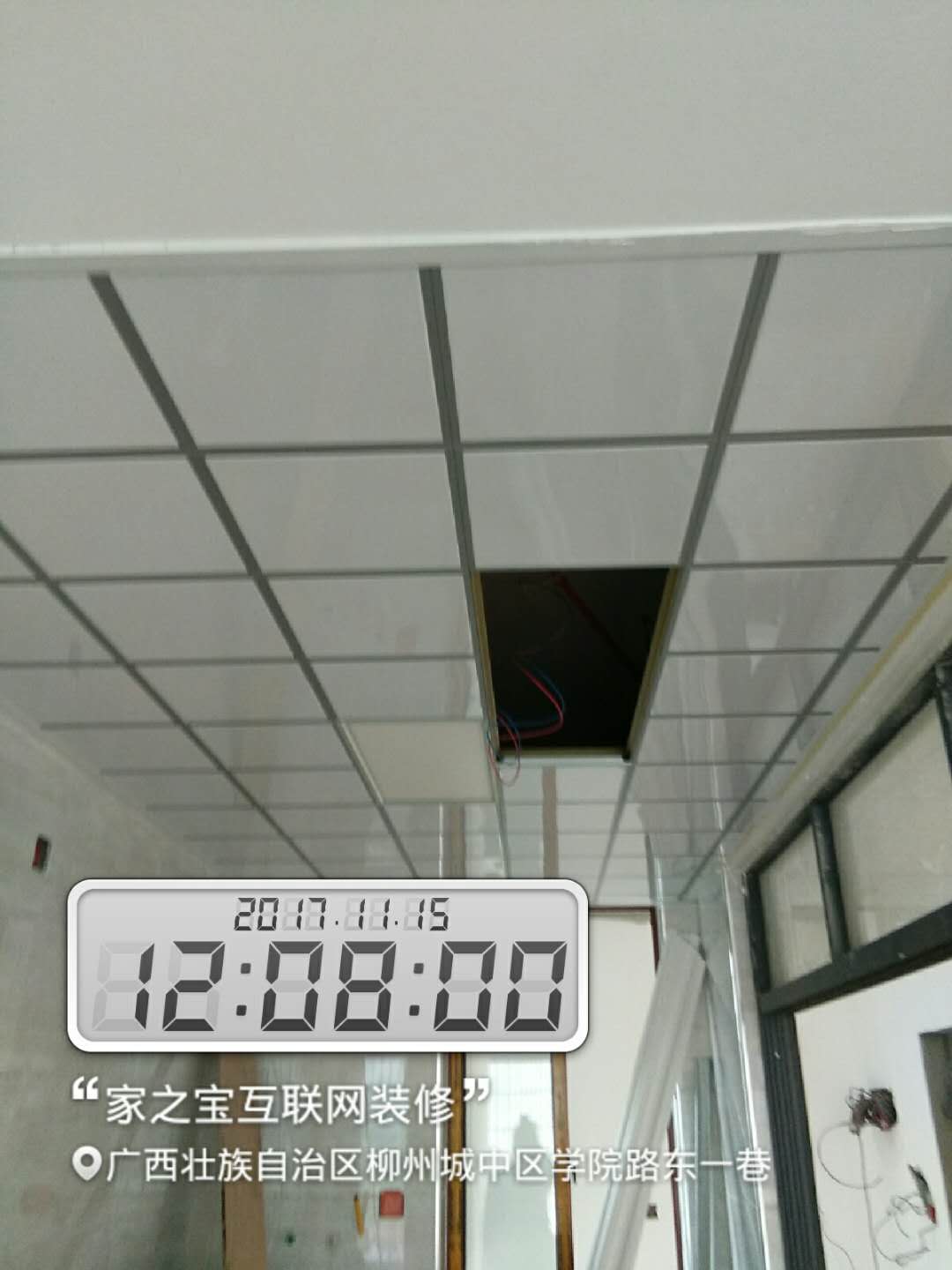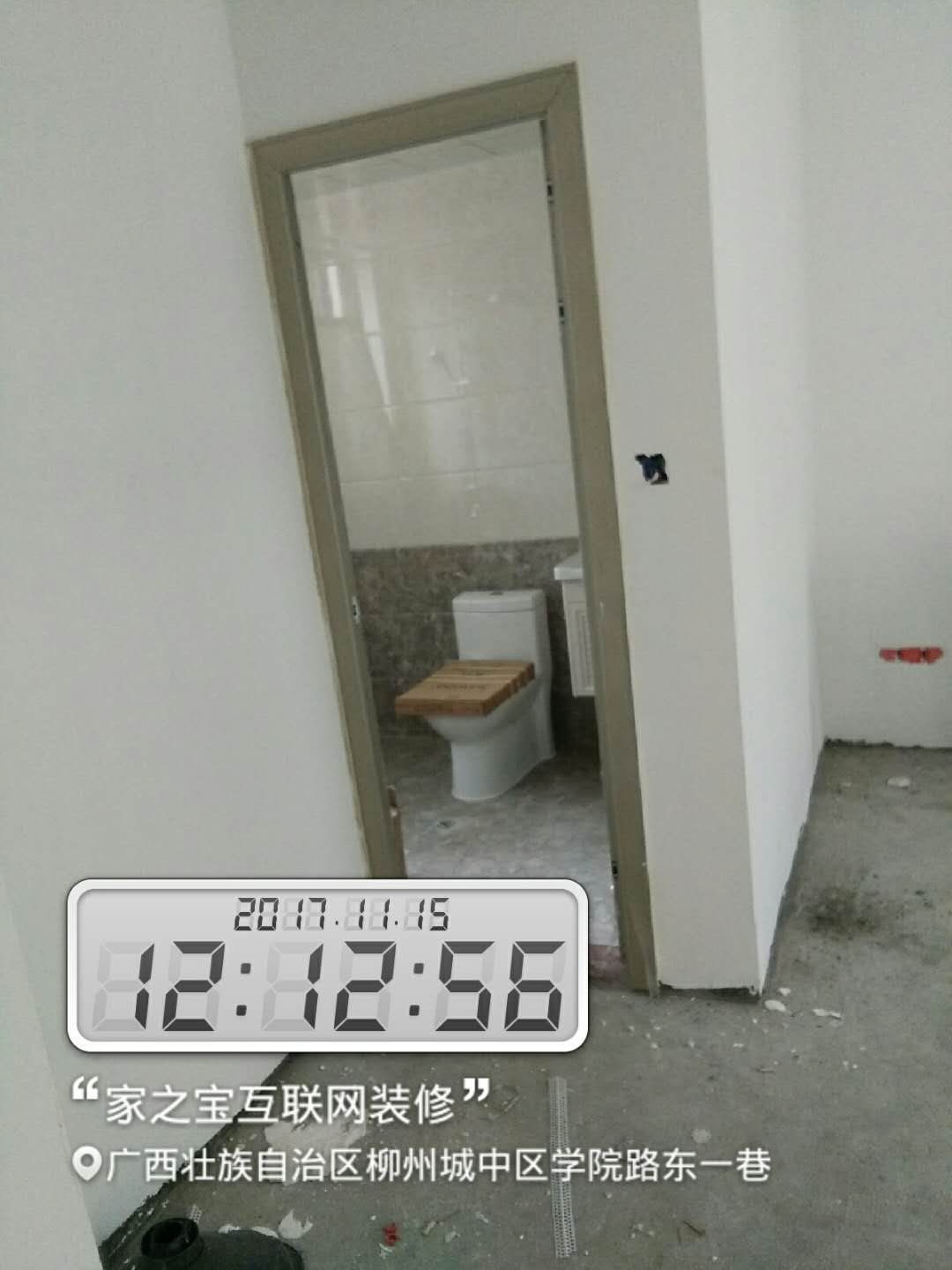 墻磚鋪貼,使用水平儀投射水平線,陽角處采用磨邊45°碰角工藝。